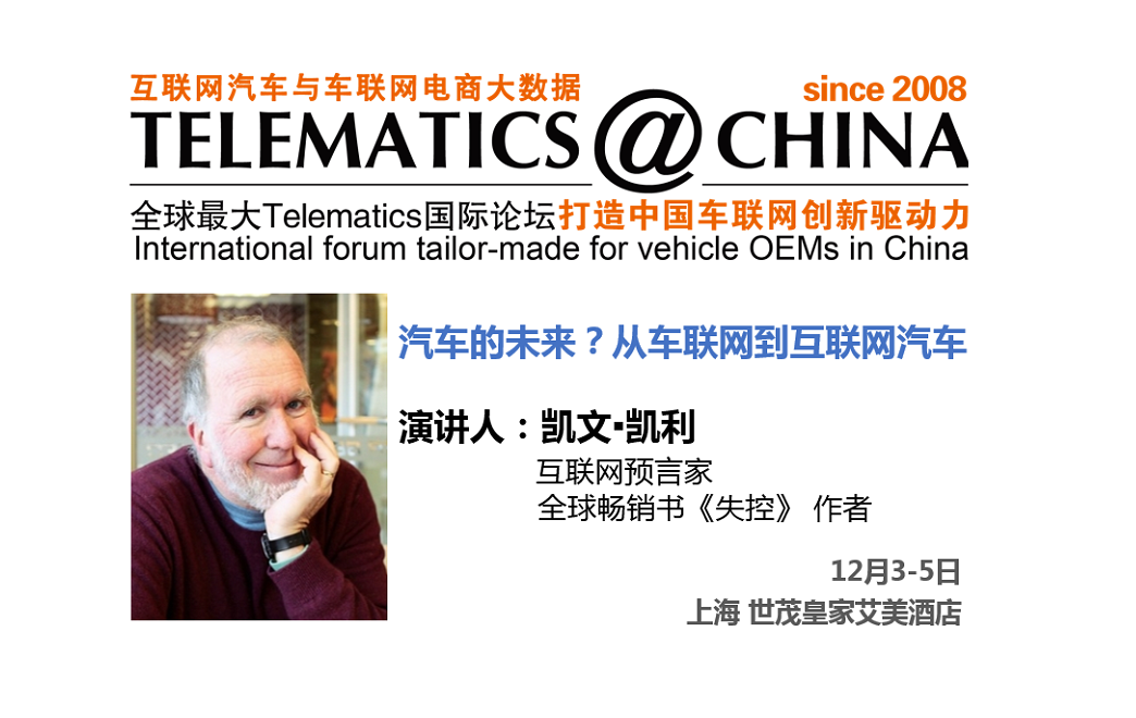 12月3日,互联网预言教父凯文凯利要来上海预测汽车的未来。上汽阿里也将在大会上深度剖析他们眼中的“互联网汽车”。12月3日的第七届TC汽车互联网大会将是中国汽车人和互联网人的一次前所未有的深度碰撞融合。